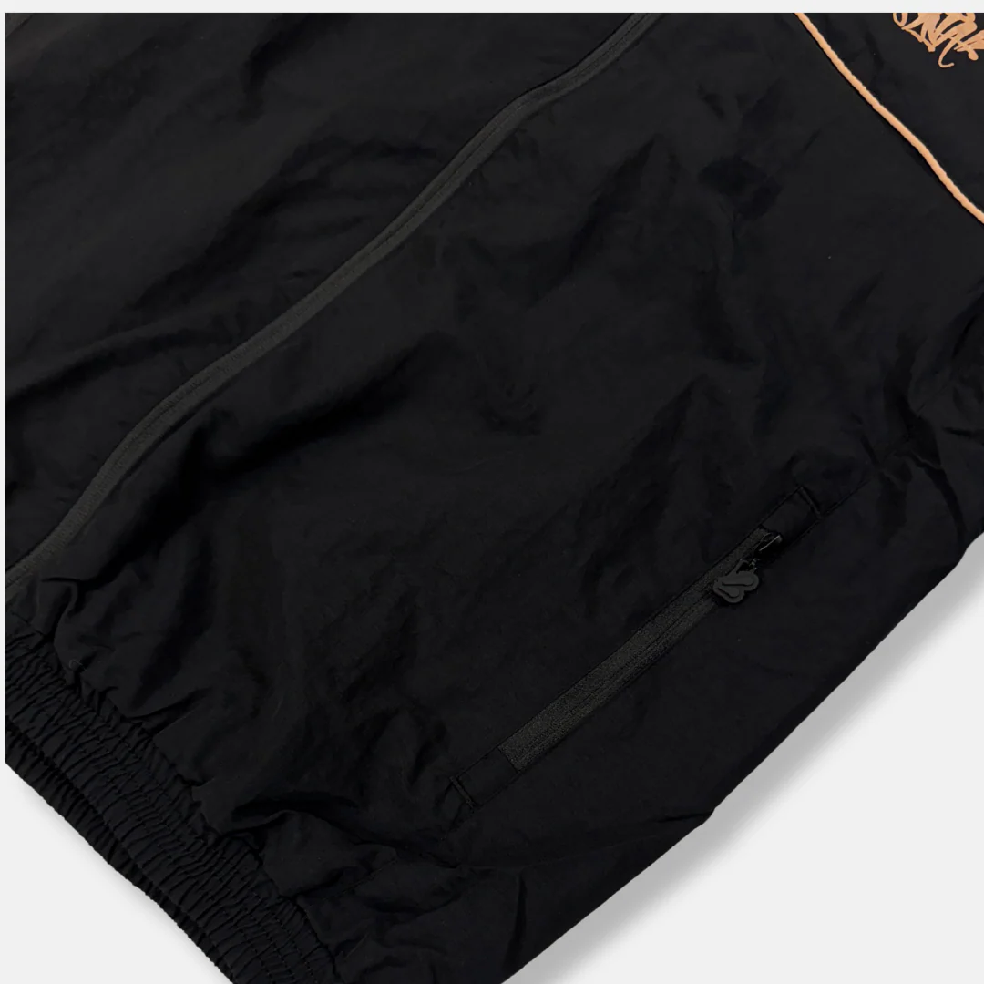 Syna World x CRG Black / Rose Gold Tracksuit, inspired by Central Cee’s latest album, Can’t Rush Greatness. This premium shell tracksuit blends high-fashion aesthetics with UK urban culture, making it a must-have.